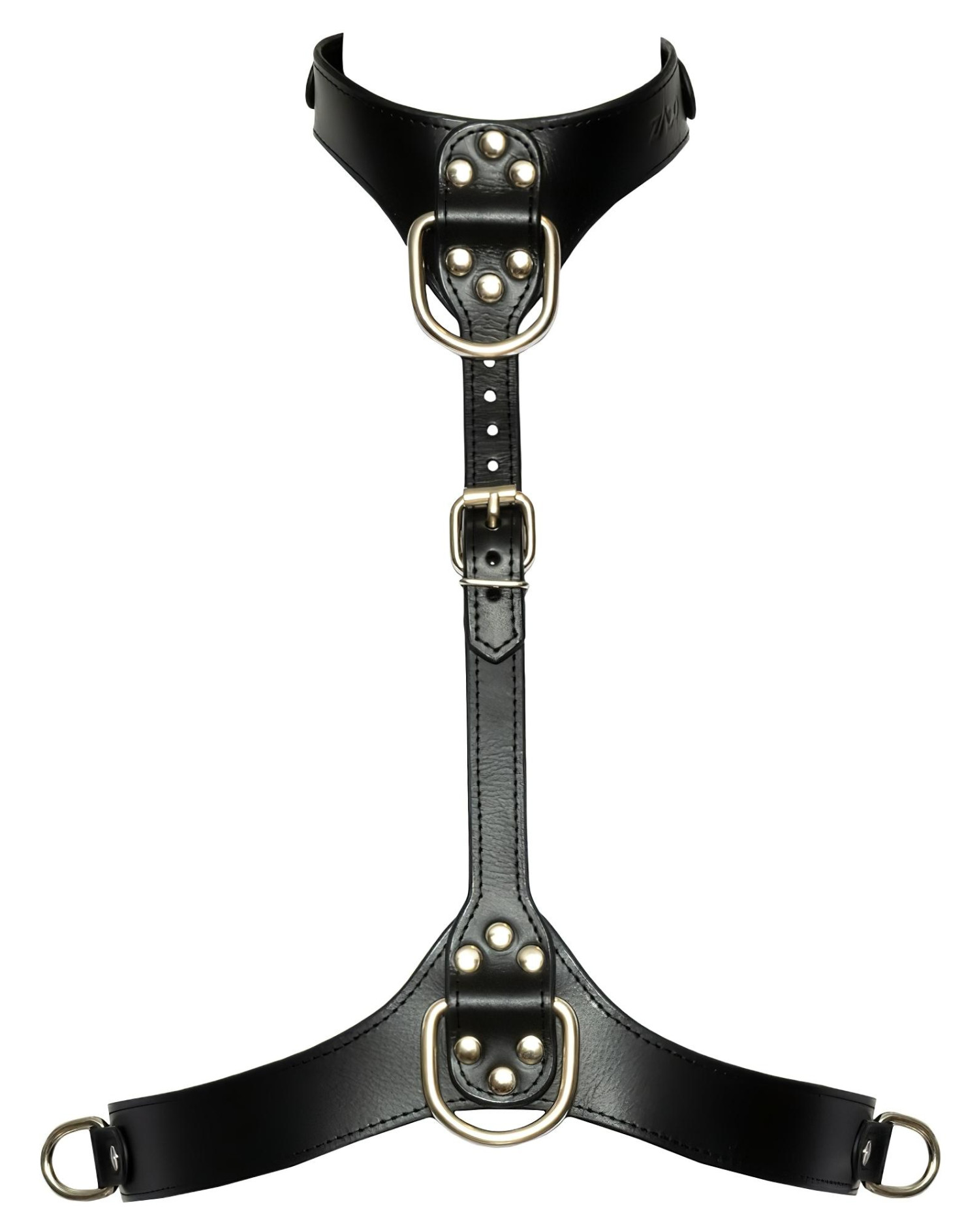 Изключително възбуждащ боди хом harness, който напълно оставя гърдите открити, с два D-образни ринга, които са задължителни за BDSM забавленията!