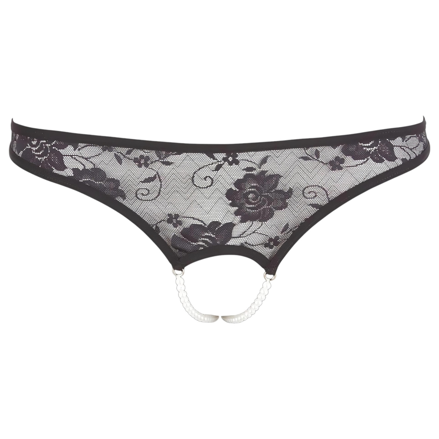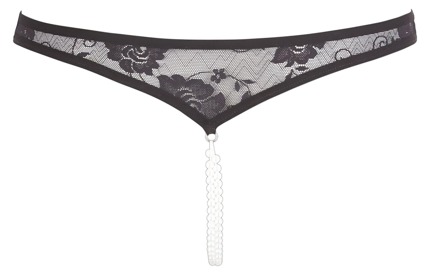 Тази впечатляваща черна дантелена прашка с две редици перли ти гарантира уникално еротично излъчване.