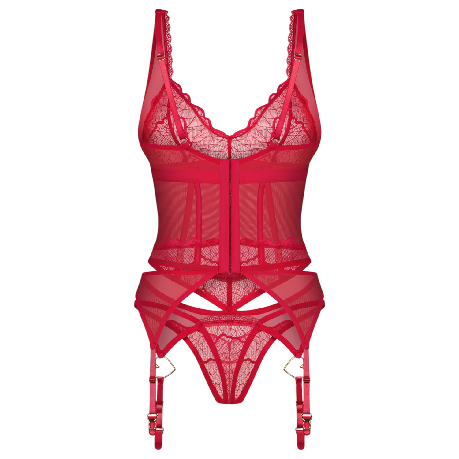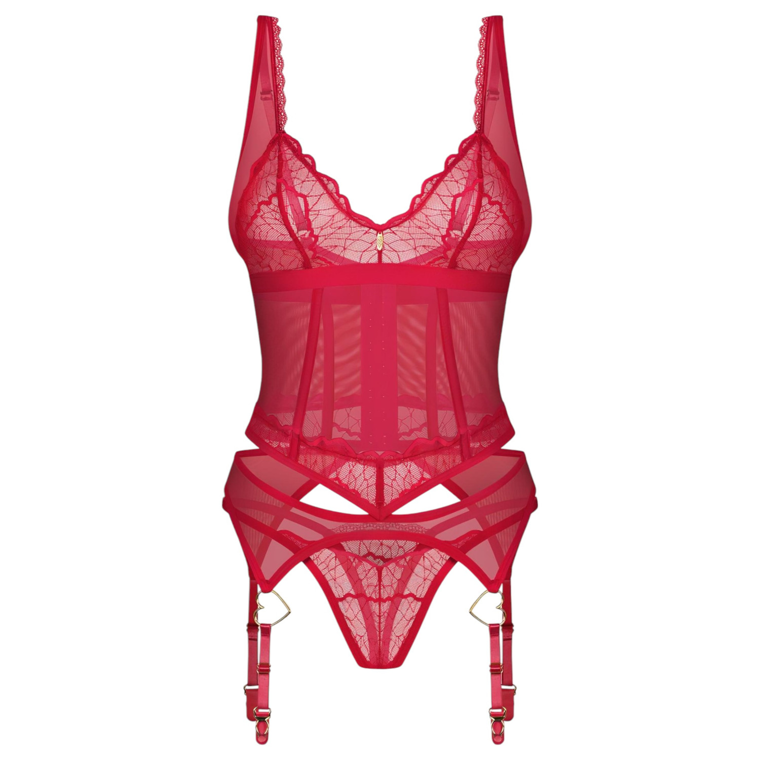 Obsessive Cupide Desir - прозрачен дантелен сет (червен)
