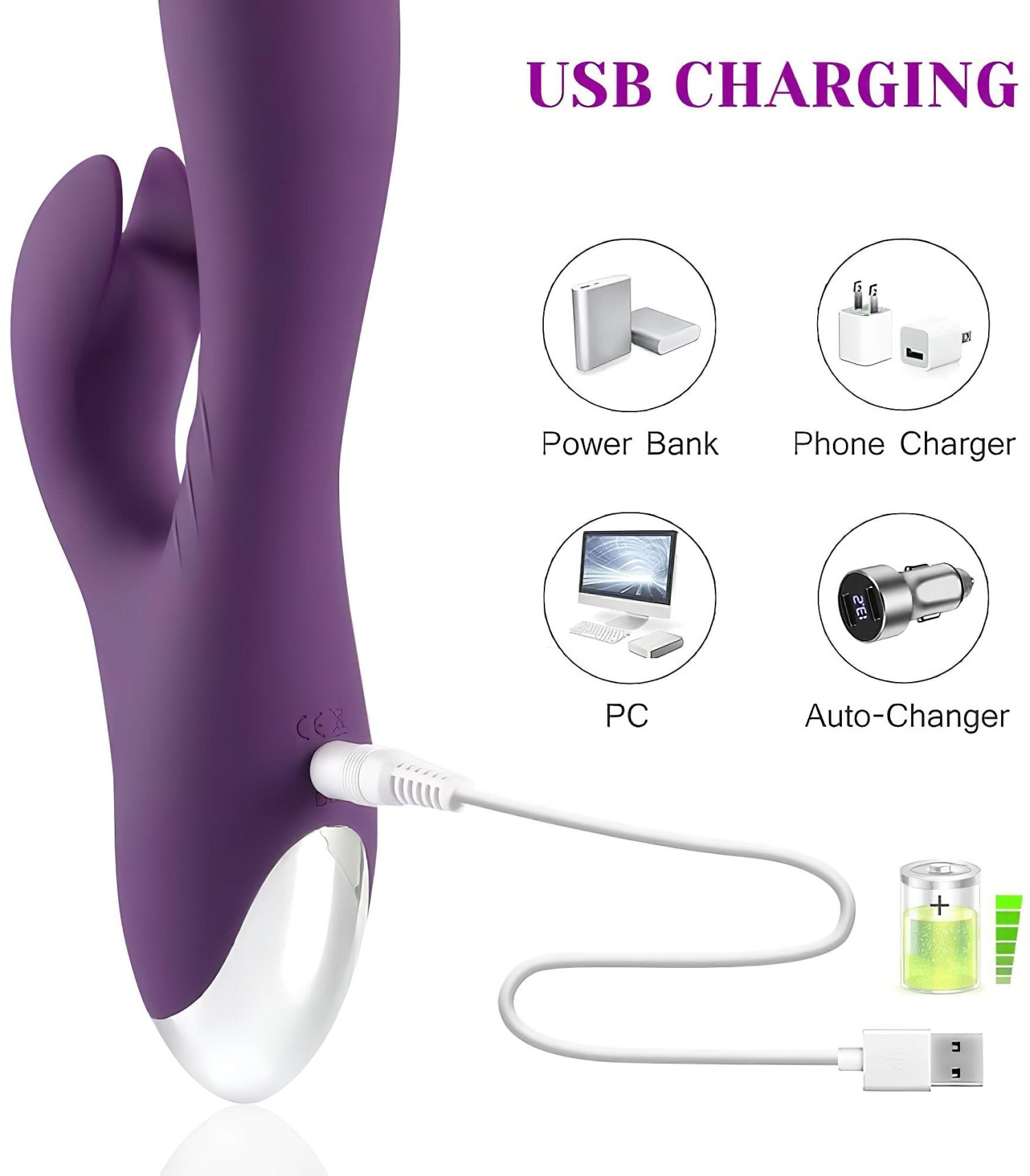 Водоустойчив вибратор заек с клиторен стимулатор (лилав)